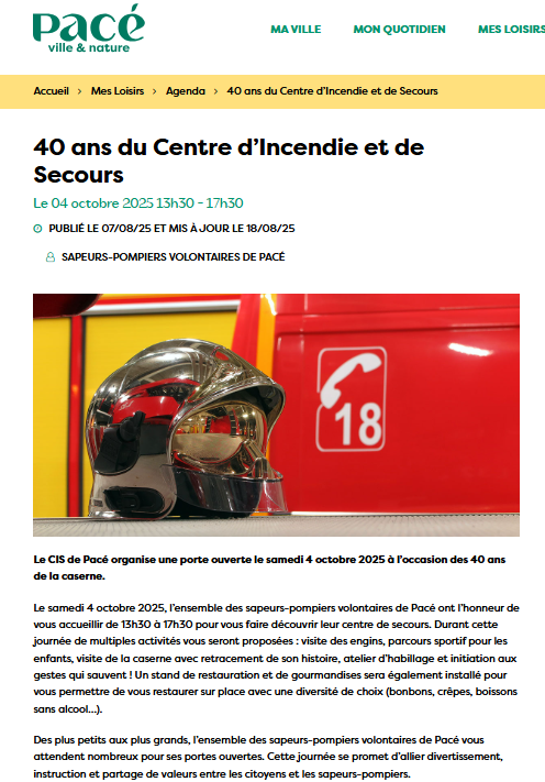 Du 18 au 21 septembre 2019 : Congrès national des sapeurs-pompiers à Vannes (56).