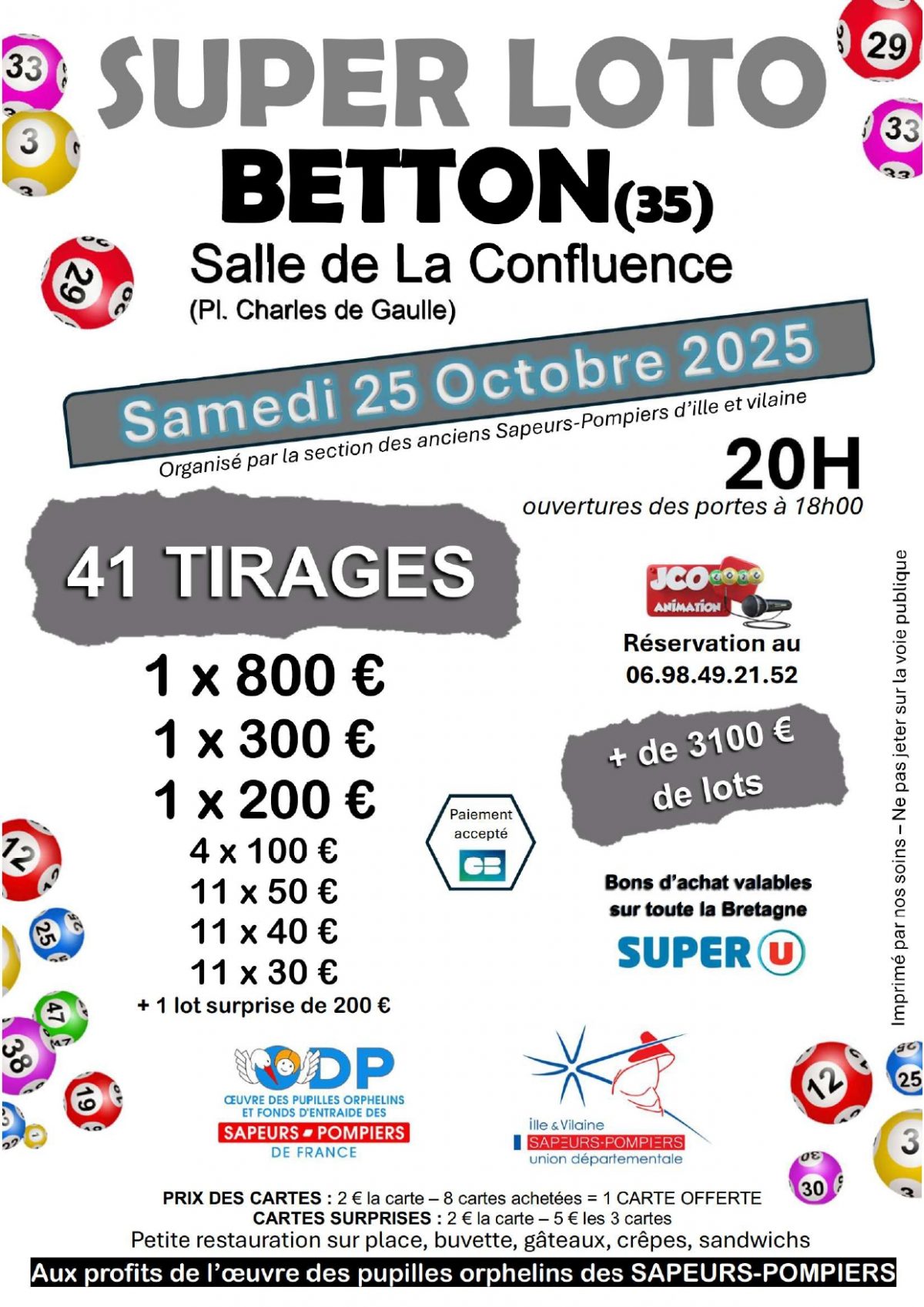 SUPER LOTO organisé par les anciens sapeurs-pompiers de Betton au profit de l’ODP
