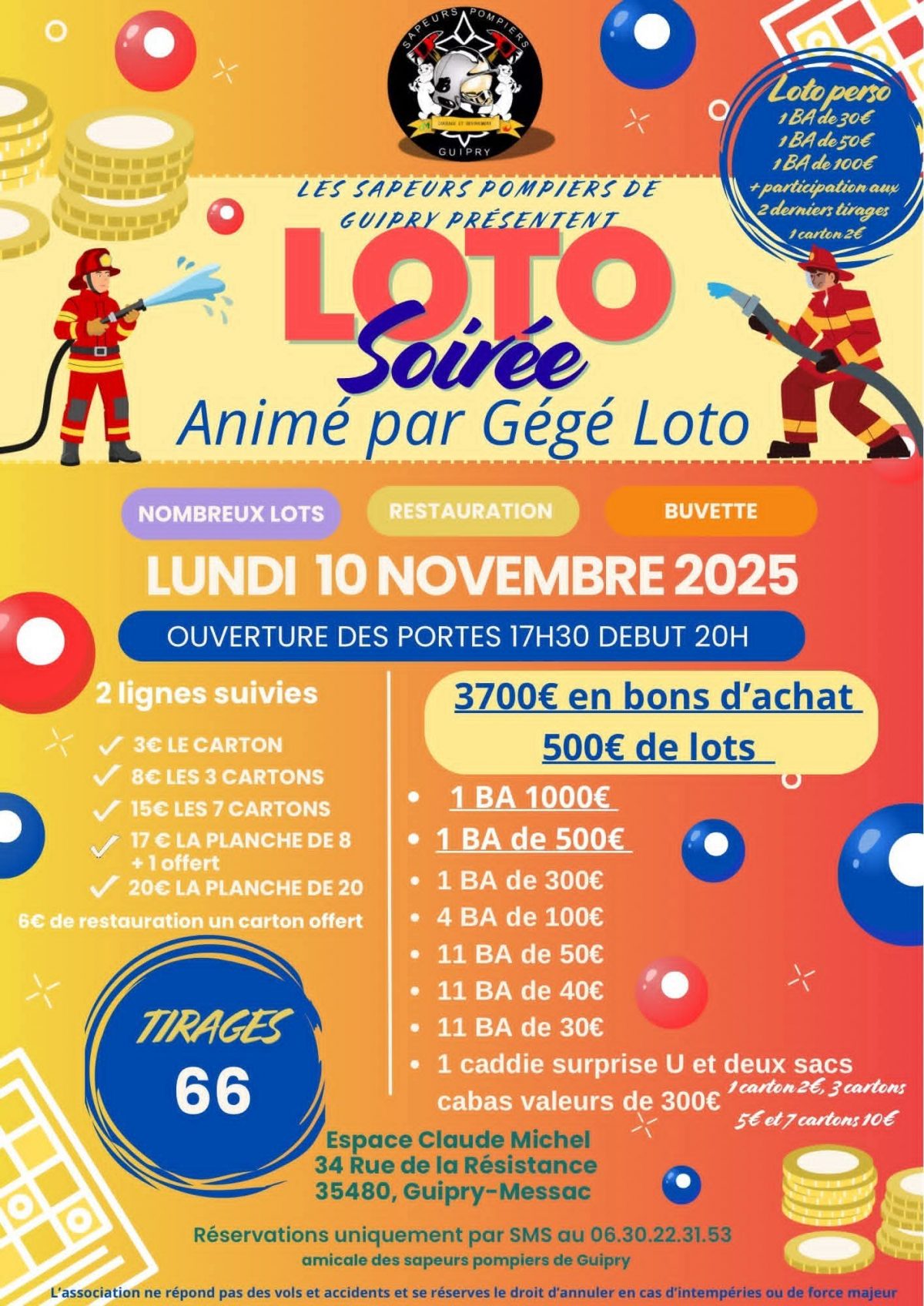 Soirée LOTO organisée par les sapeurs-pompiers de Guipry