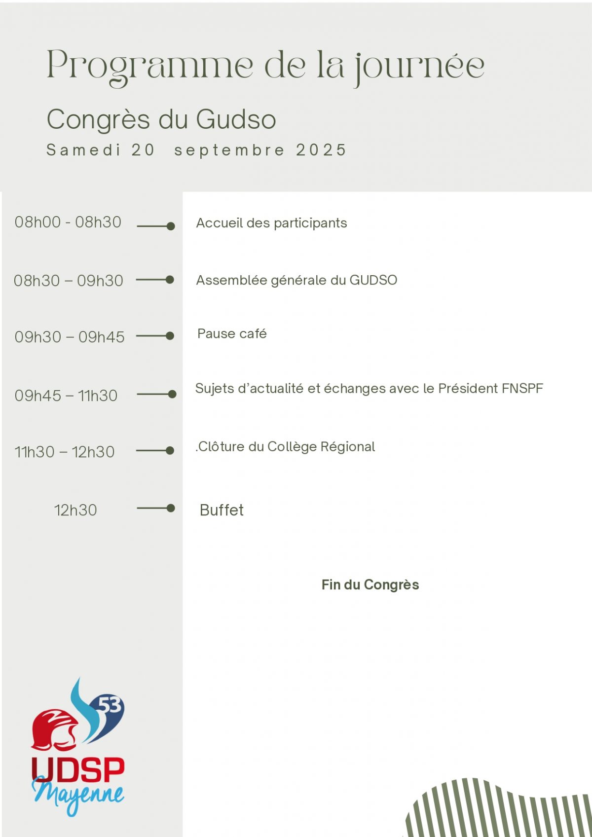 Cet événement a également été l’occasion pour le GUDSO de faire peau neuve ce week-end avec l’élection de son nouveau président, Anthony DERSOIR, président de l’UDSP 53 qui succède à Patrick BLANCHET de l’UDSP 14 que l’on remercie.