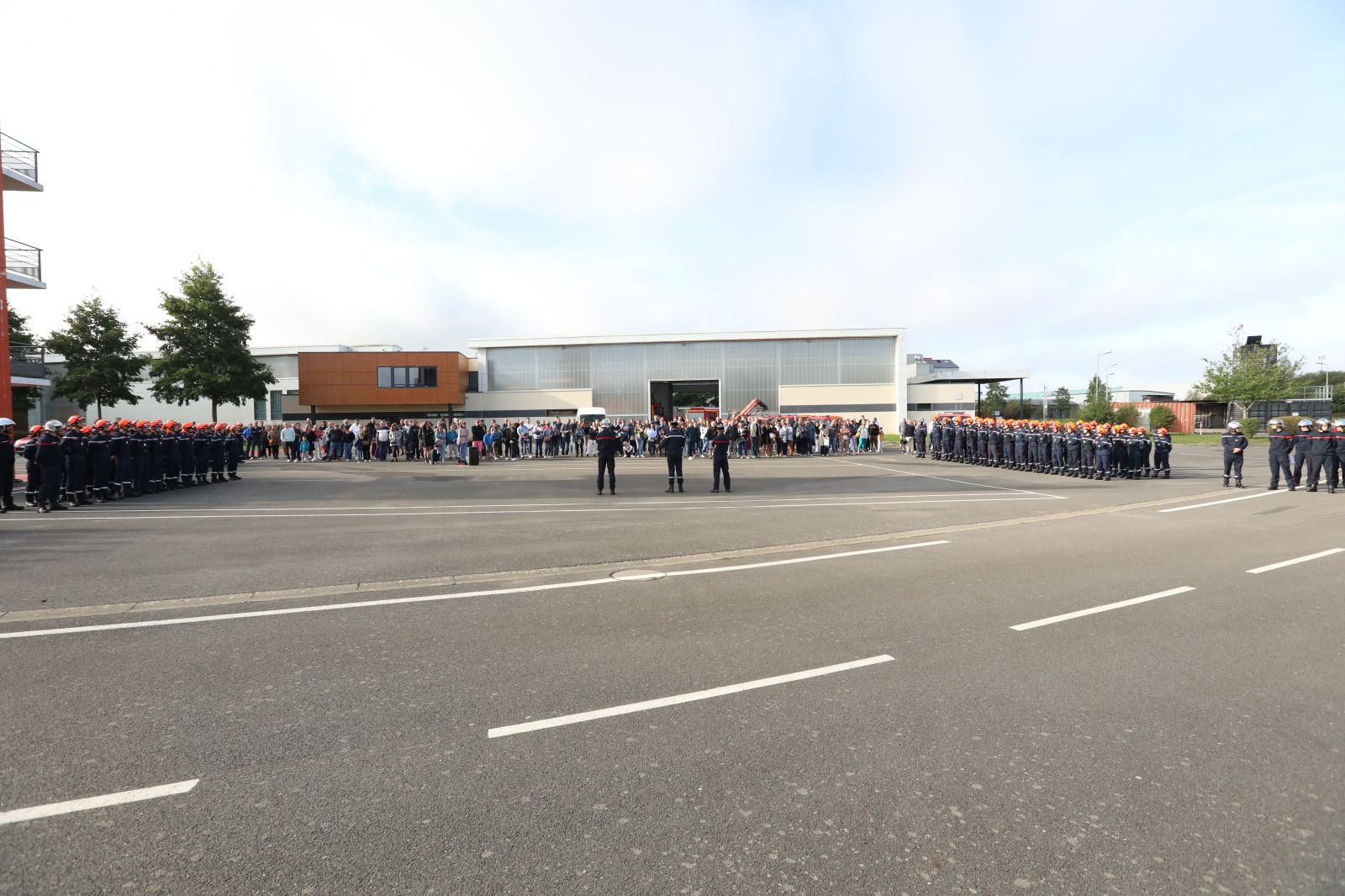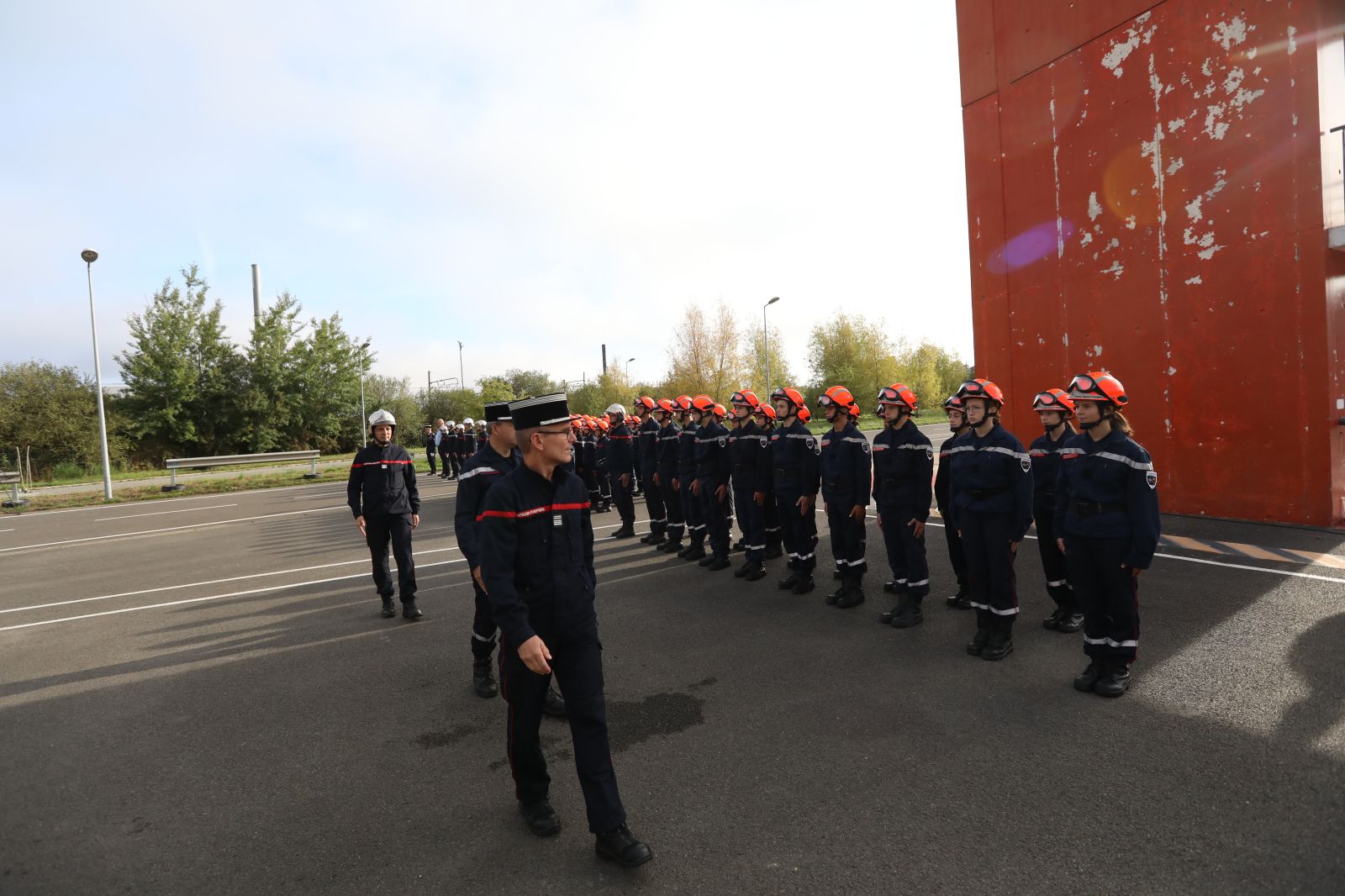 Les 30 jeunes-sapeurs-pompiers en 1ère année du Centre de formation départemental (12 filles et 18 garçons) ont fait leur première rentrée ce matin au centre de formation départemental des sapeurs-pompiers d’Ille-et-Vilaine à L’Hermitage accompagnés de leurs parents, formateurs et encadrants.