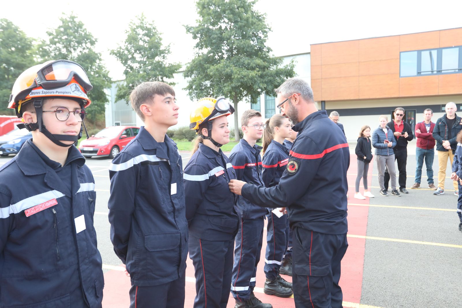 Ces jeunes ont reçu leur écusson et galon de jeune sapeur-pompier 1ère année, symboles de leur intégration.