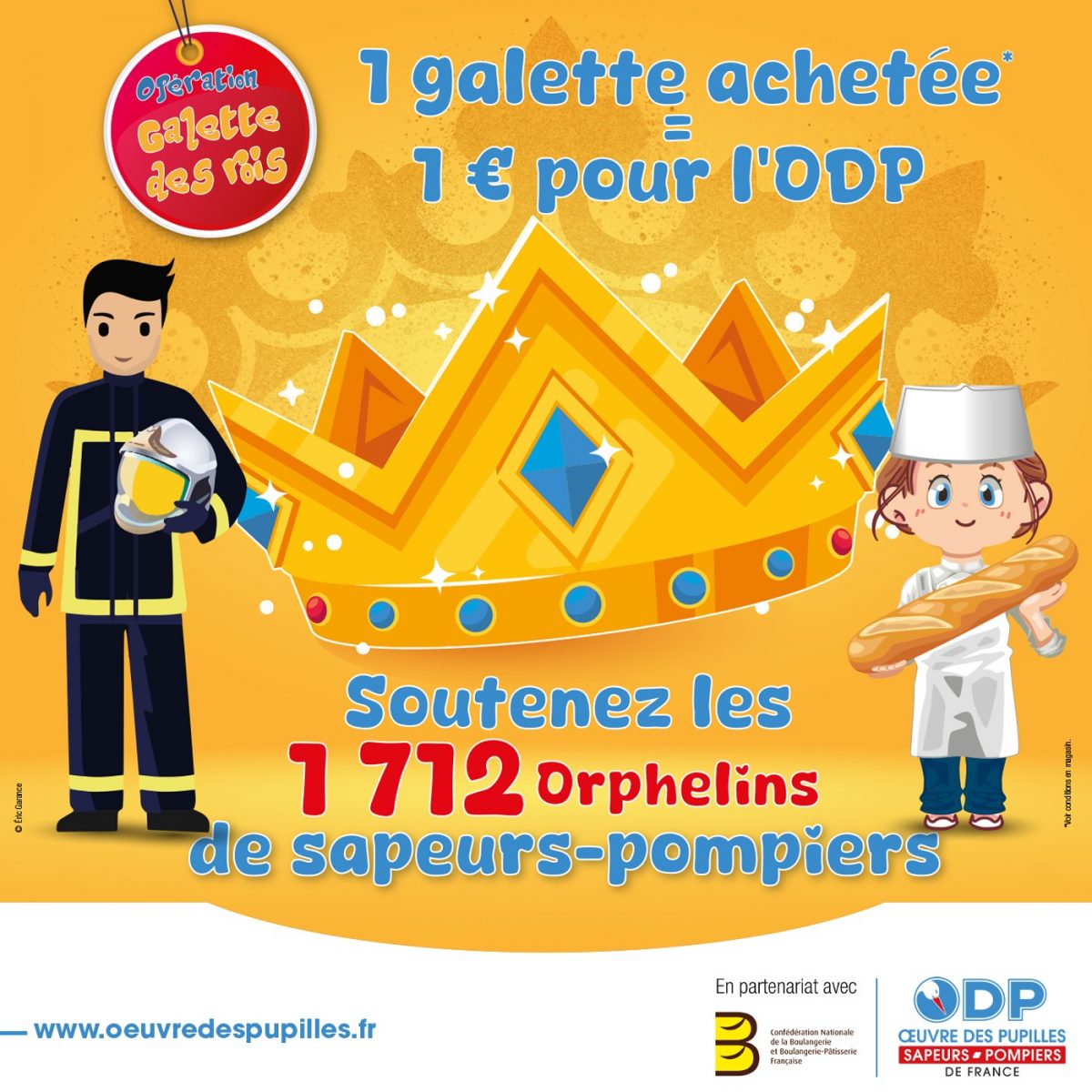 Une affiche pour vos futurs partenaires est à votre disposition pour mettre en avant ce dispositif où 1 galette des rois achetée en magasin représente 1 euro reversé en faveur de l’ODP. Chaque don est essentiel au maintien de ce maillon de solidarité.